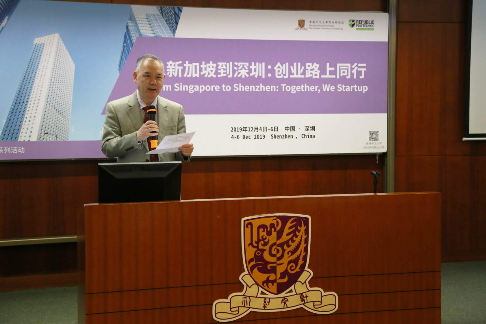12月6日,香港中文大学深圳研究院院长任扬教授在闭幕致辞中指出,本次活动旨在帮助新加坡的企业家了解粤港澳大湾区的创业环境和相关政策,粤港澳大湾区是培育企业家精神和为全球企业创业生态系统最开放创新的核心湾区,而深圳则是一个高度重视企业家精神和创新的城市,如腾讯、华为、中兴等高科技龙头企业总部都设在深圳就是最好的印证。深圳研究院将立足于深圳,一如既往的发挥连接香港与深圳、深圳与国际的重要的枢纽平台作用,为全球的创业者提供独特的发展机遇,促进国际交流与合作。