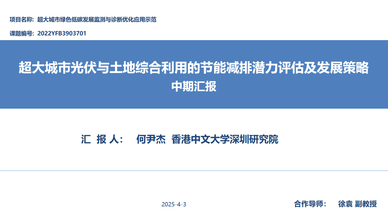 会上何尹杰博士后进行题为《超大城市光伏与土地综合利用的节能减排潜力评估及发展策略》的报告。本课题评估超大城市光伏与土地综合利用的节能减排潜力,并制定发展策略。通过城市建筑屋顶、交通网络和海岸线实现分布式光伏与土地的综合利用,以实现城市节能减排目标,尤其是对湾区超大城市。研究分析了影响屋顶光伏安装的因素,评估了城市光伏可安装面积和发电潜力,并分析了其经济可行性和效益。最后,在国土空间规划背景下提出了“统筹布局—渐进发展—政策保障”的框架,同时提出了资金、规划、政策和技术等方面的支持建议。
