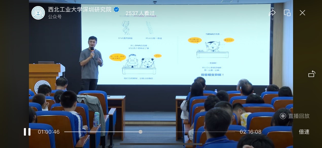 讲座会场座无虚席,为了让更多观众感受到这位深受大众喜爱的文化传播者的风采,西北工业大学深圳研究院在官方视频号进行了现场直播,直播观看人次超过两千人。