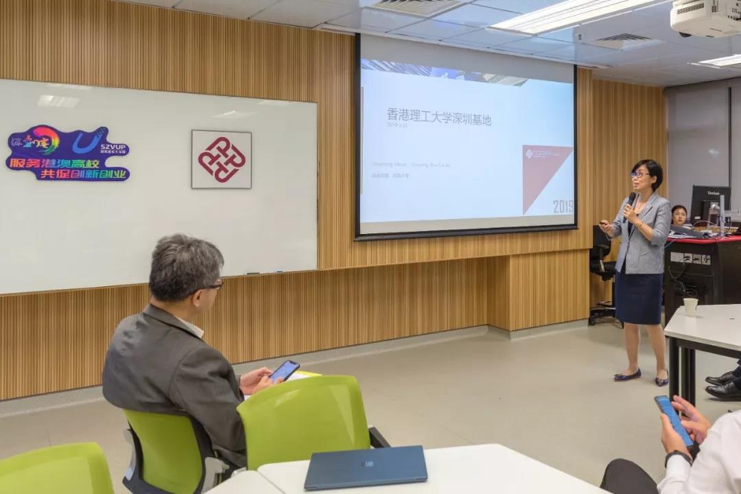 香港理工大学深圳产学研基地总裁陈绮东女士介绍理大创新创业在深圳的发展情况