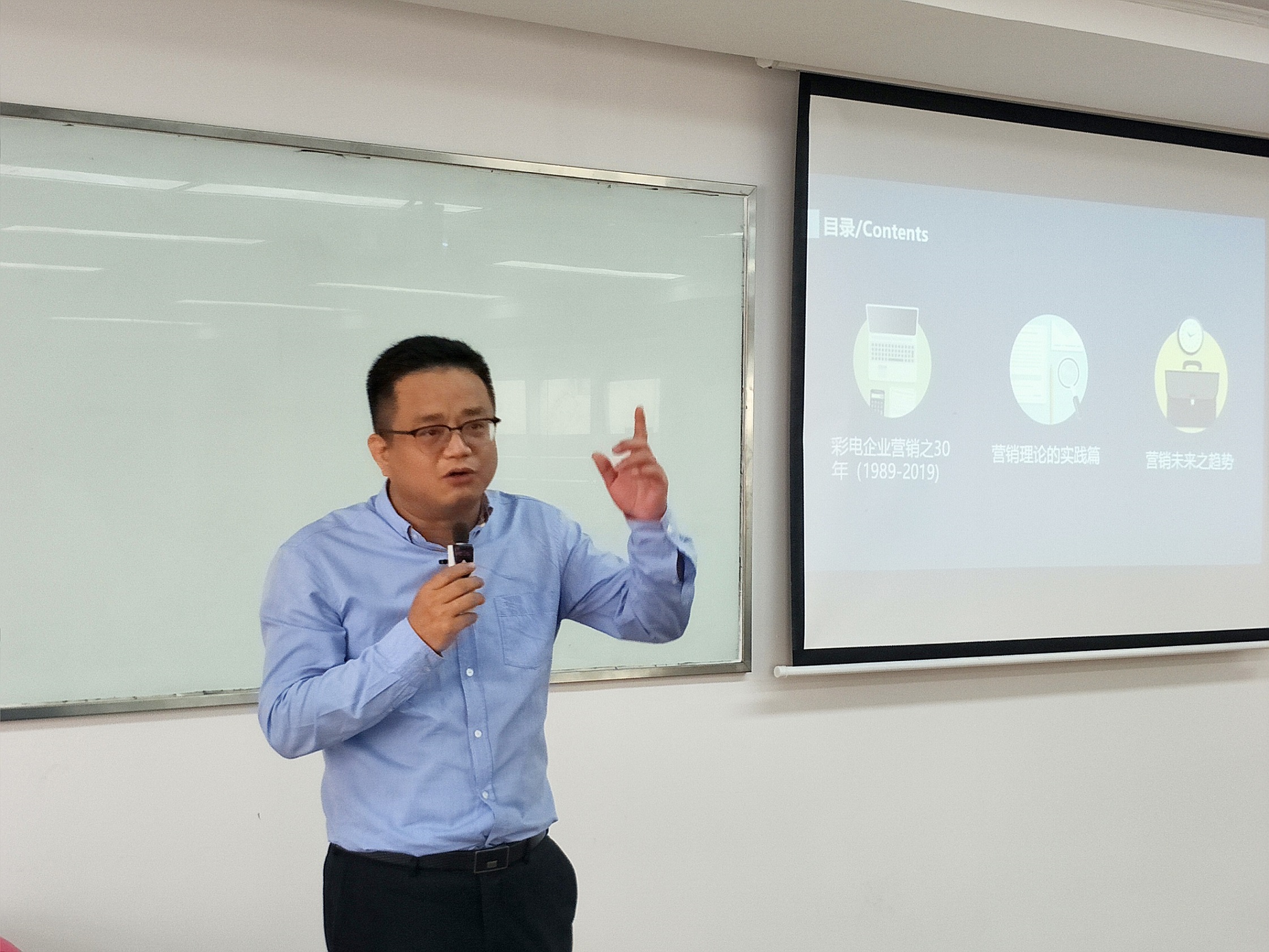 孙伟中先生通过自己19年的营销从业经验,首先回顾了30年(1989-2019)中国彩电企业营销历程,对销售过百亿的彩电业知名品牌长虹、康佳、TCL、创维、海信、乐视、小米和CVTE的营销策略进行了详细的解读,帮助同学们深入了解彩电业营销模式;其次,孙总根据他对国际市场的开拓经验及国际并购的实操案例,从各国企业文化的差异分析入手,提出了中国彩电业的国际化营销策略,帮助同学们以全球化的视野思考中国企业的海外市场营销之道;最后,结合互联网与中国经济深度融合现实情境,从消费者主权崛起,商业模式创新、推陈出新等营销环境分析,提出了中国彩电业未来变革方向及营销展望。