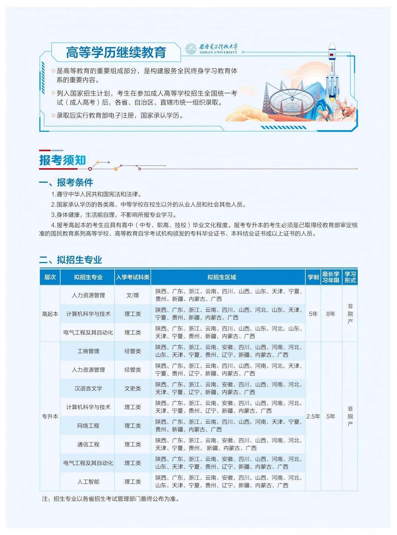 西安电子科技大学2025高等学历继续教育招生简章