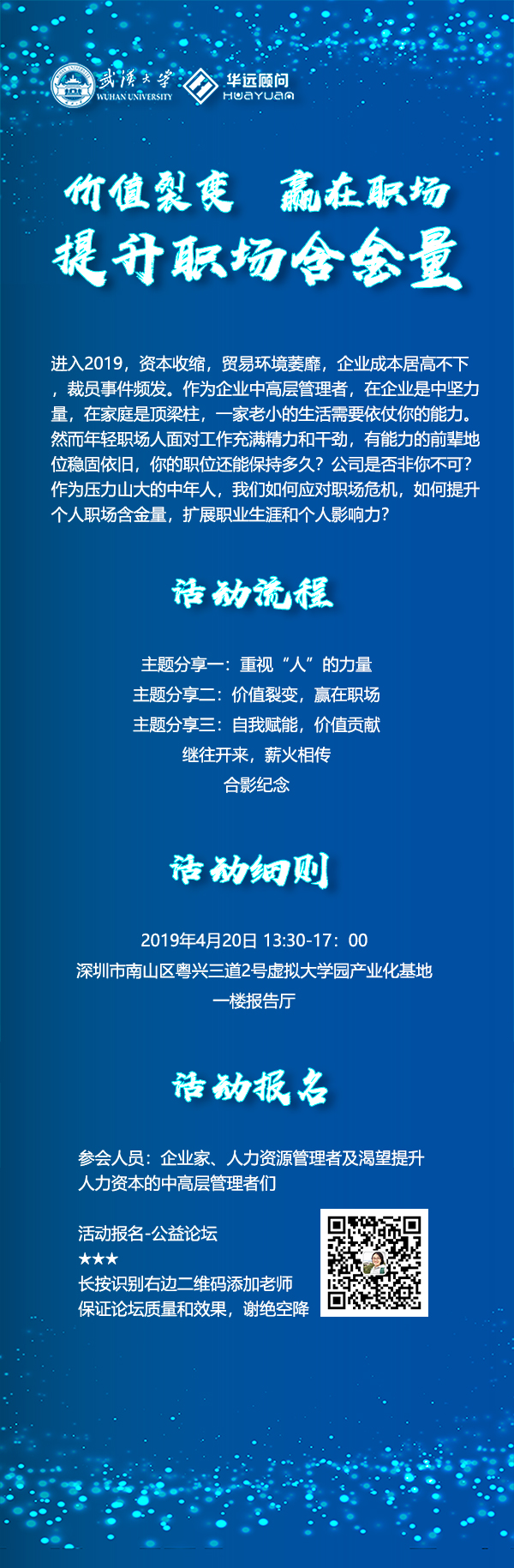【武汉大学深圳研究院】公益讲座——《价值裂变,赢在职场——提升职场含金量》