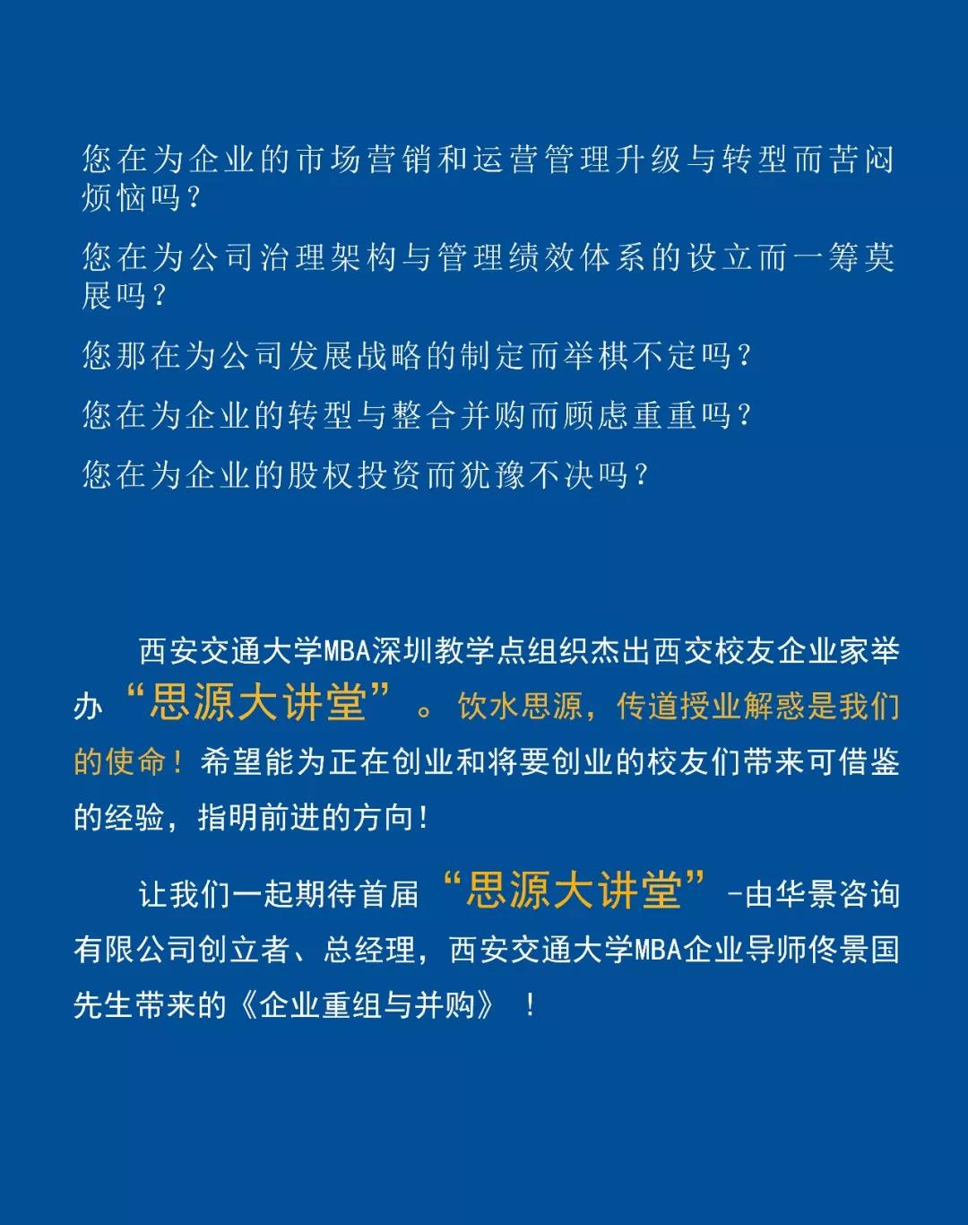 【西安交通大学深圳研究院】思源大讲堂——《企业重组与并购》