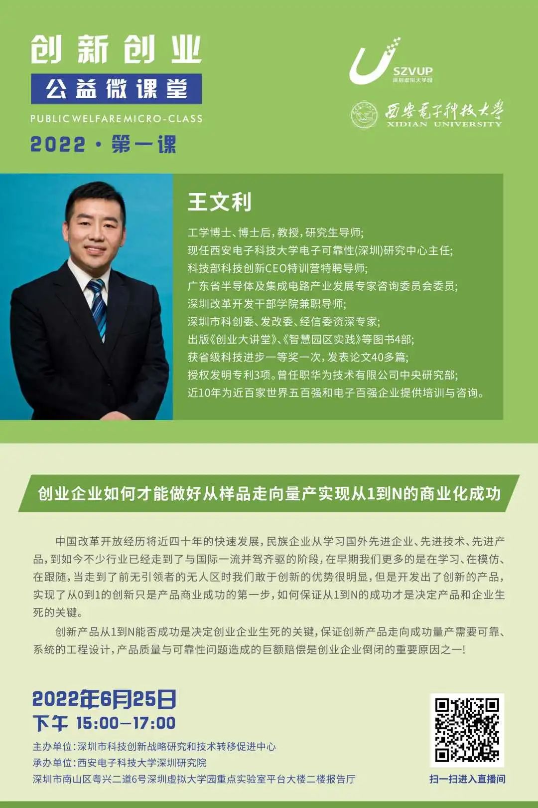 讲座预告 | 创新创业公益微课堂第一课【创业企业如何才能做好从样品走向量产实现从1到N的商业化成功】