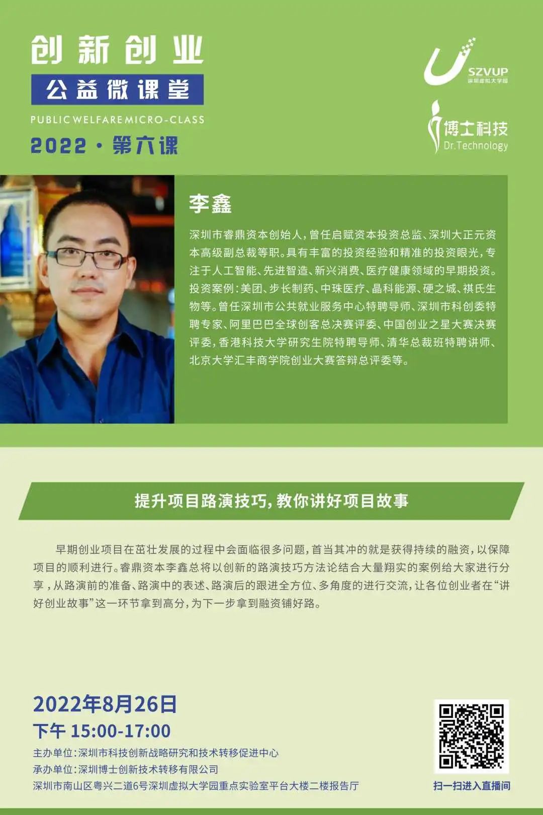 讲座预告 | 创新创业公益微课堂第六课【提升项目路演技巧,教你讲好项目故事】