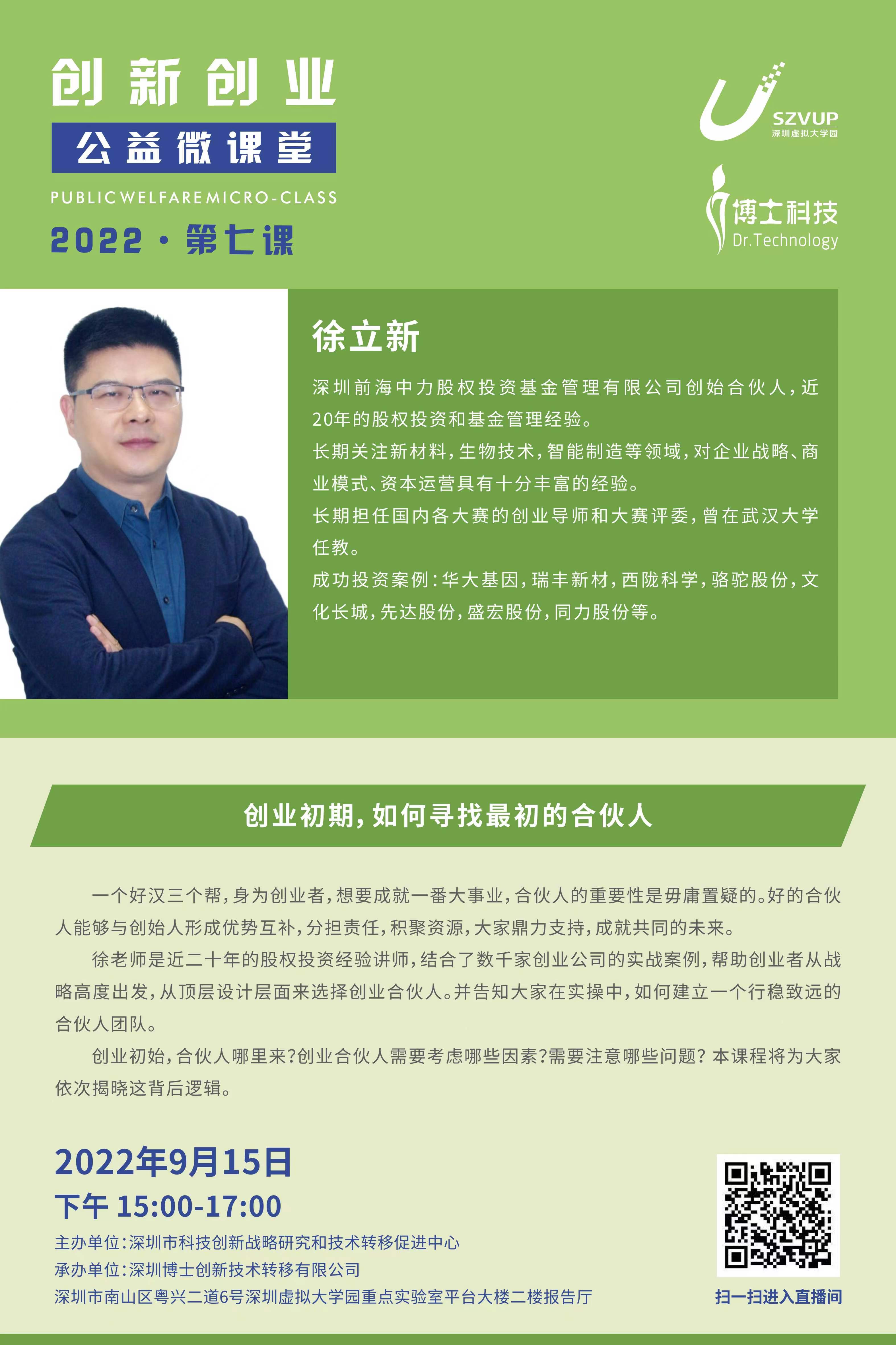 讲座预告 | 创新创业公益微课堂第七课【创业初期,如何寻找最初的合伙人】