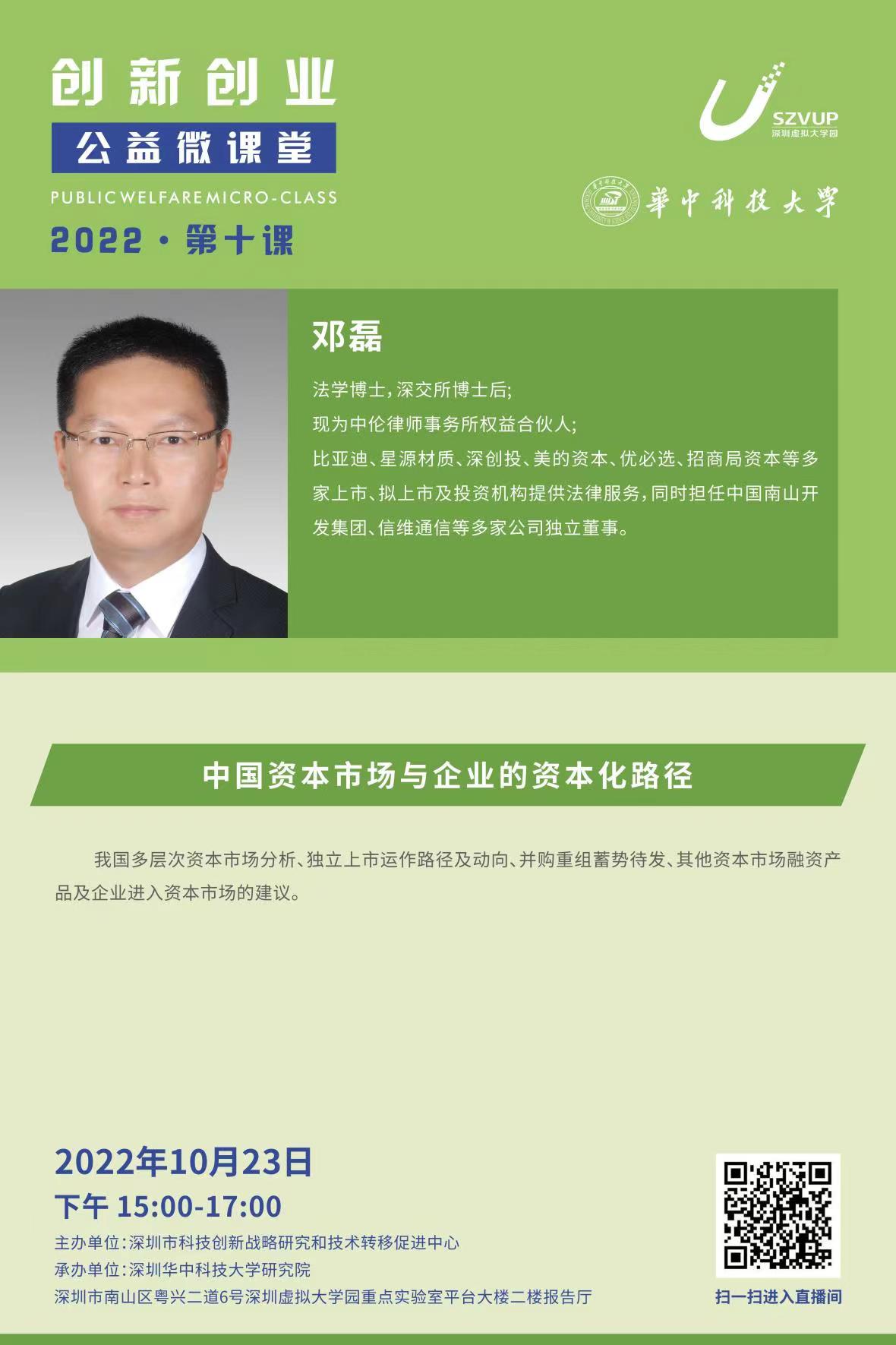 讲座预告 | 创新创业公益微课堂第十课【中国资本市场与企业的资本化路径】