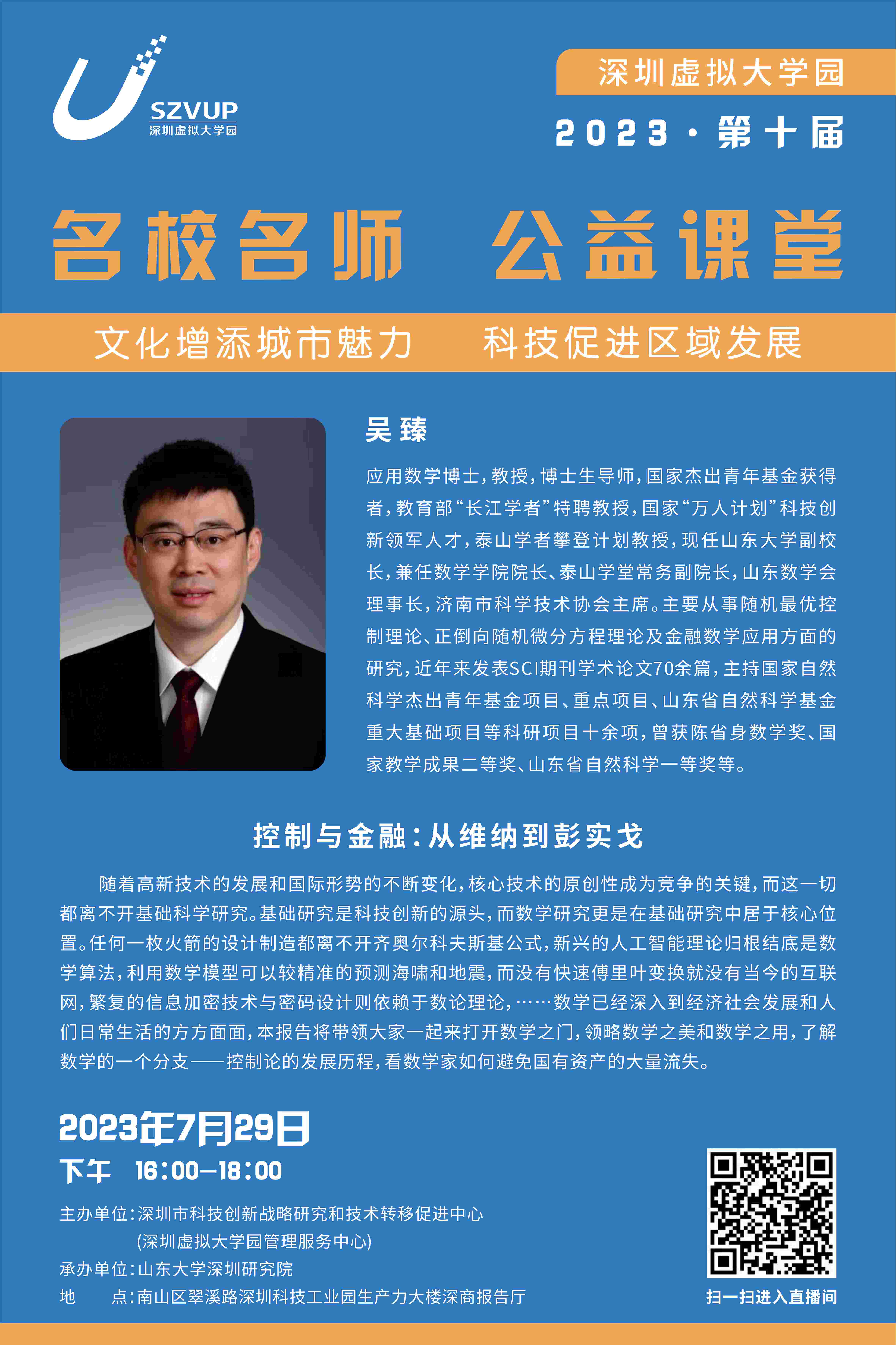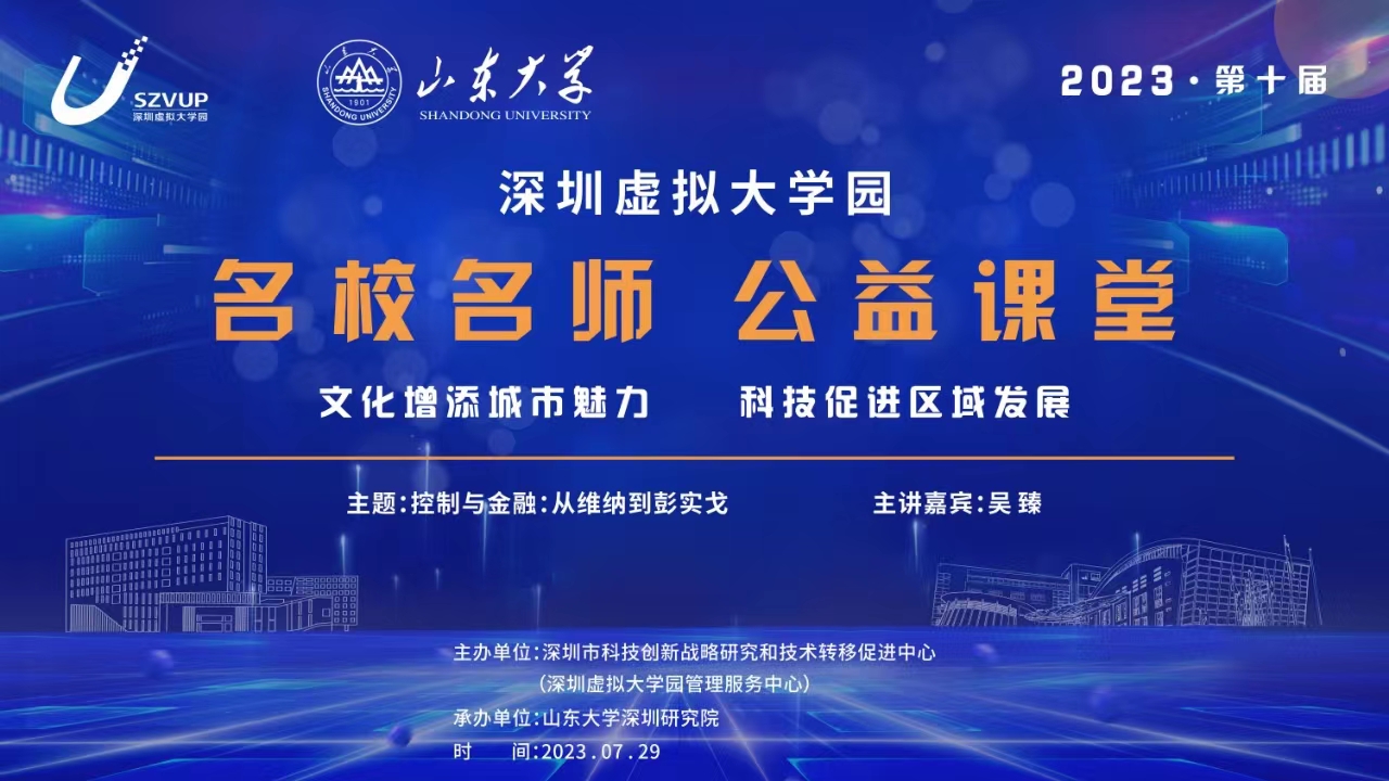 名校名师公益课堂山东大学吴臻教授【控制与金融:从维纳到彭实戈】