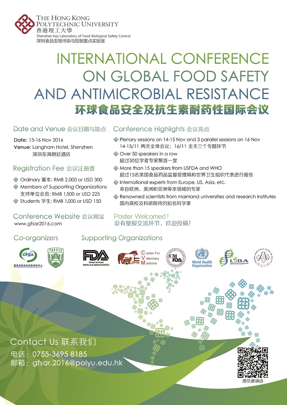 环球食品安全及抗生素耐药性国际会议(2016年11月13-16日,深圳)