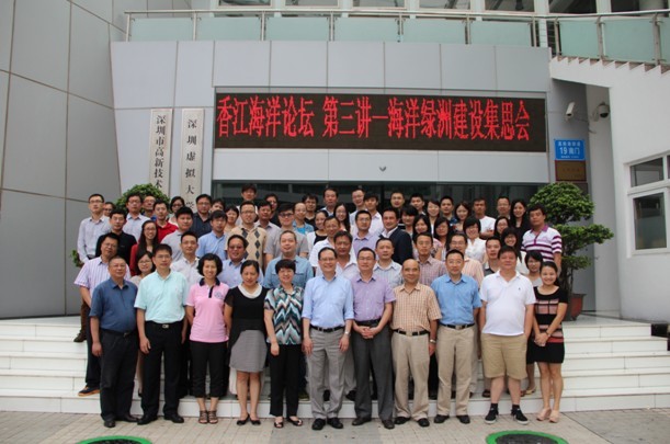 (香港城市大学深圳研究院  刘俏)2013年7月20日,由深圳海洋研究与技术联盟(SMART)主办,深圳虚拟大学园管理服务中心、香港城市大学海洋污染国家重点实验室、深圳市中兴新通讯设备有限公司、清华大学海洋技术研究中心、清华大学深圳研究生院海洋学部承办的香江论坛第三讲——海洋绿舟(Ocean Oasis,O2)建设集思会在深圳虚拟大学园一楼演示厅隆重召开。此次会议聚集了来自香港城市大学、清华大学、北京大学、南京大学、厦门大学、深圳大学、暨南大学、香港浸会大学、香港科技大学、中科院深圳先进技术研究院、深圳海洋环境与资源监测中心等高校和科研机构的近六十名专家学者,围绕拟建设的“海洋绿舟”观测平台在水文、生化指数、生物资源等监测方面展开讨论。参与的教授、学者涉及的专业有海洋生物、环境化学、生态毒理、医疗器械、数据传输及通讯、生物传感器及微流控、质谱、在线偏振光及激光光片高速-高清成像系统、流式细胞计数等。深圳市中兴新通讯设备有限公司、深圳市中兴环境仪器有限公司、深圳市朗诚实业有限公司、潜水网络公司作为企业代表,深圳市科技创新委员会张爱民副处长作为深圳政府代表,香港渔农自然护理署高级渔业主任朱振华博士作为香港政府代表出席了本次研讨会。
