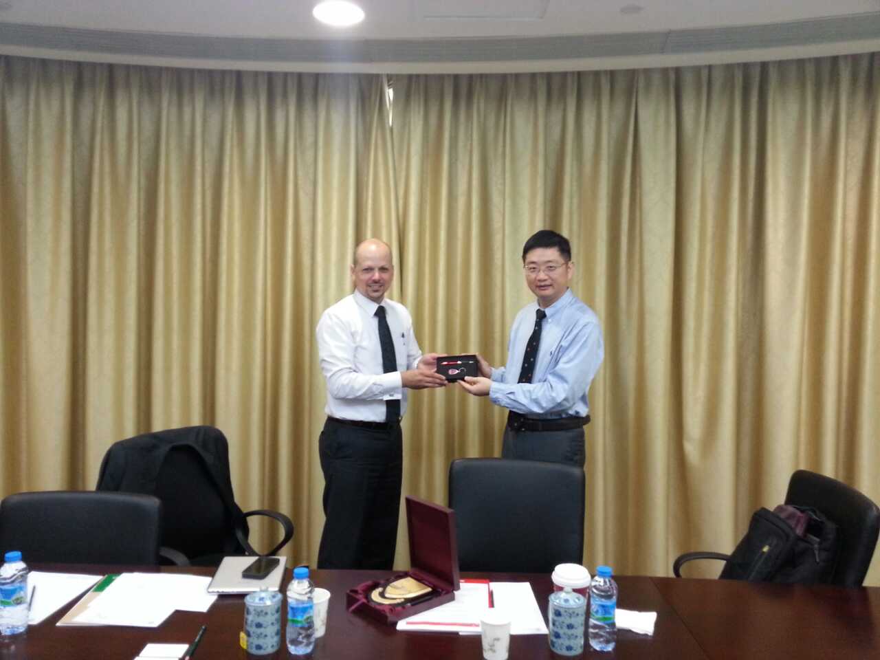 仪式后,白洪海教授、教育中心负责人李竹安女士以及项目拓展主任卢婉娟女士与安迪一行进行了双方合作会谈。白教授首先全面细致地介绍了产学研基地和研究院的成长历程、取得的丰硕成果以及未来的发展方向。而后,双方就社会工作服务项目、证书认证课程等方面展开了深入的探讨,并就项目合作的执行细节进行了细致的可行性分析,达成了有效共识和合作谅解备忘录。会后,白教授带领安迪一行参观了基地各个研发中心。