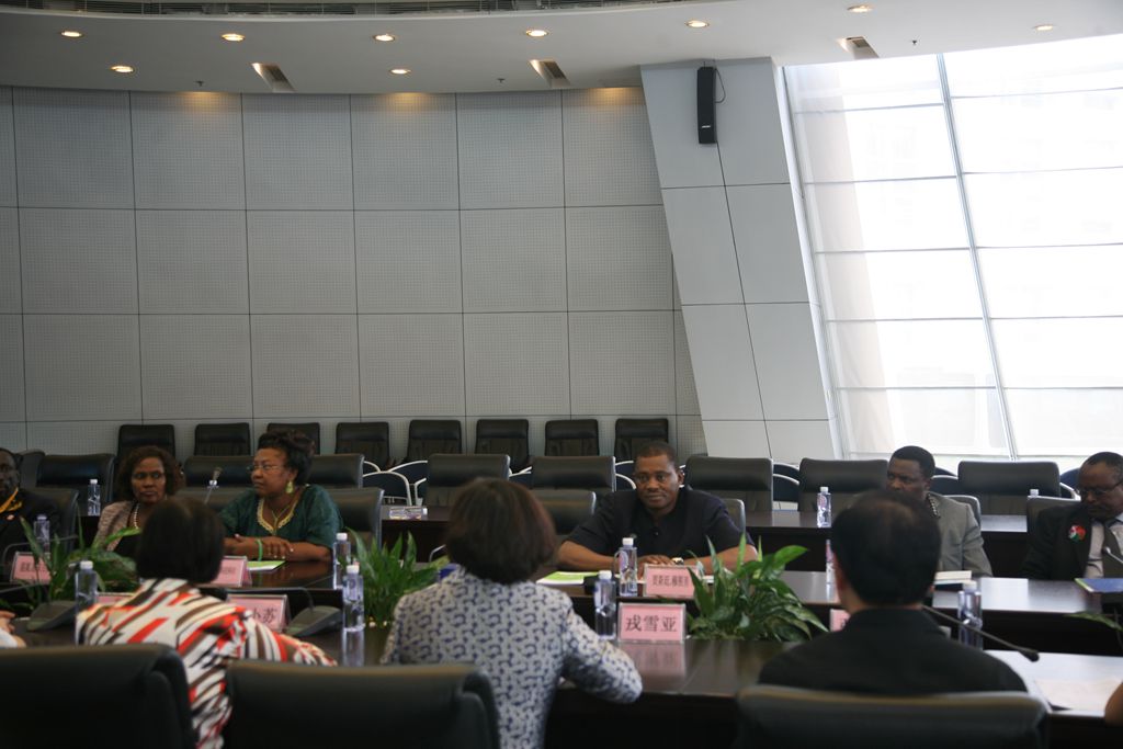 下午,肯尼亚共和国众议长穆图里率团访问虚拟大学园,我中心领导戎雪亚副主任、陈阿莹副主任热情接待了议长代表团一行并举行了会谈。