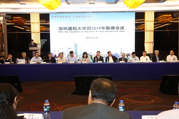 20151115日,深圳虚拟大学园2015年联席会议在博林诺富特酒店举行。深圳虚拟大学园57所国内外著名成员院校领导、嘉宾200余人出席会议。教育部科技司副司长娄晶、深圳市常务副市长张虎、市科创委主任陆健、副主任邱宣等领导出席会议并发表讲话。山东大学常务副校长王琪珑、合作发展部部长王飞、山东大学校友工作办公室主任兼合作发展部副部长王宗义、山东大学技术转移中心主任李勇、深圳研究院常务副院长兼合作发展部副部长王明星、山东大学合作发展部副部长兼国内合作办公室主任王海华、深圳研究院副院长、深圳校友会副会长傅杰等出席会议。