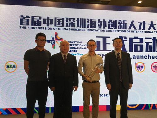 2015年11月17日上午,第七届“深创赛”颁奖典礼暨深圳海外创新人才大赛启动仪式在深圳市五洲宾馆隆重召开。出席颁奖仪式的嘉宾包括国家外国专家局副局长刘延国、深圳市副市长艾学峰、深圳市科技创新委员会副主任邱宣等。来自英国中央兰开夏大学承办的英国赛区的张豪团队以及深圳市普罗惠仁医学科技有限公司分别从嘉宾手上接过了沉重的“深创赛”团队组和企业组总冠军的宝座,为第七届“深创赛”划上了一个完美的句号。会后,深圳市科技创新委员会副主任邱宣女士为来自英国赛区的张豪团队送上热烈的祝贺,并细心地为其团队介绍深圳海外高层次人才落户的优惠政策。