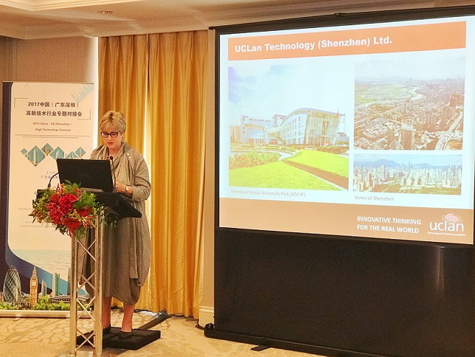 On 14th June 2017, Madam Liz Bromley, Deputy Vice Chancellor of University of Central Lancashire (“UCLan”), was invited to attend the China (Guangdong) and the U.K.(London) Economic and Trade Cooperation Conference - China (Guangdong) Hi-Tech Seminar and share cooperation experiences about research and innovation between UCLan and China.
