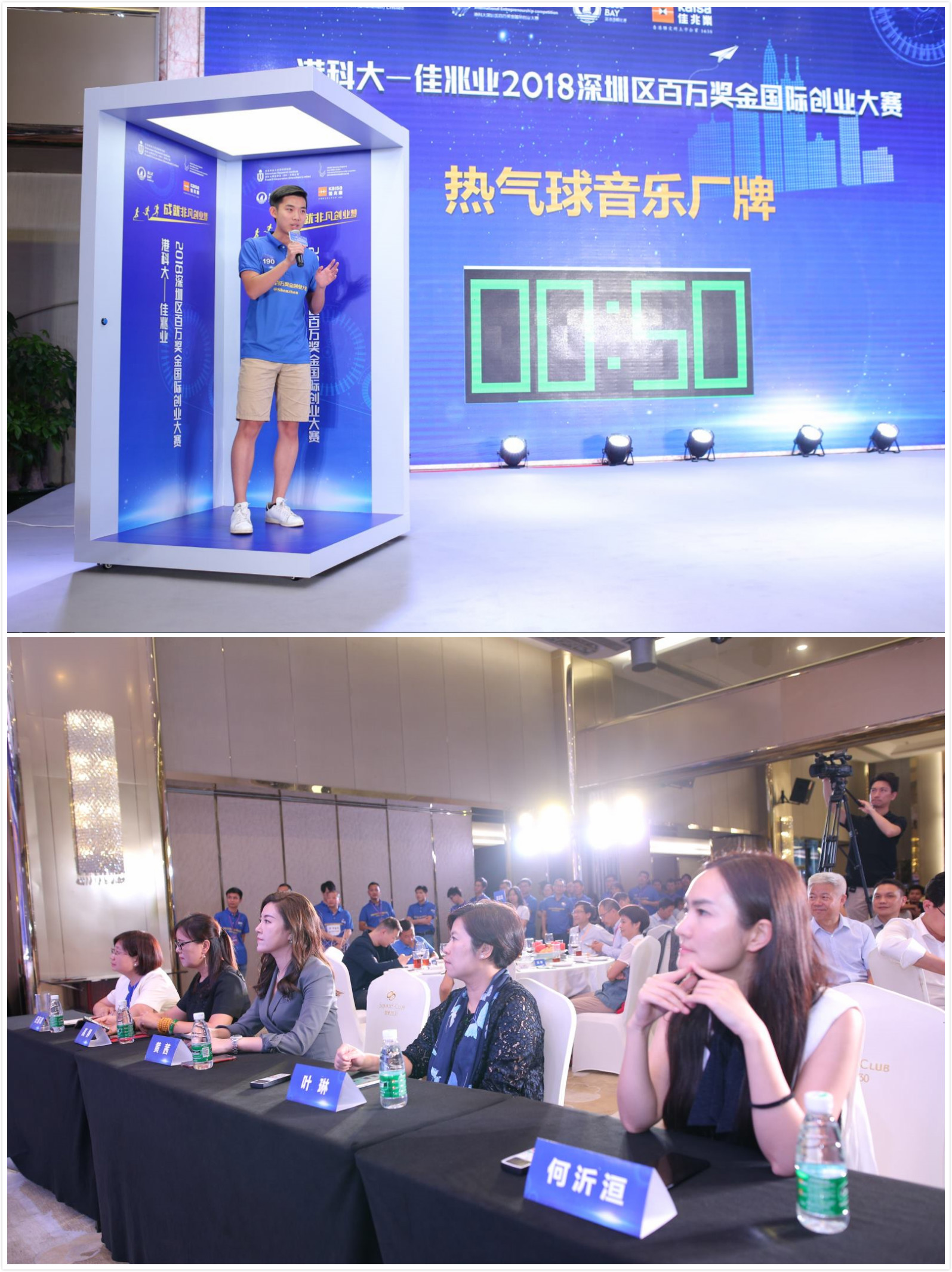 在晚上的赛事环节中,本次赛事最年轻的参赛团队——热气球音乐厂牌首先精心安排了开场表演,为大家带来了一场精彩的视听享受。赛事的另一个特色环节——电梯演说也揭开了神秘的面纱,组委会为该环节精心准备了实景电梯,并特邀美貌与智慧并存的美女评审团为团队进行现场打分。在这狭窄的场景及仅有的60秒时间里要想最大化表现自己可绝非易事,虽然时间及空间均有限,但团队慷慨激昂的表现仍将晚上的气氛推向高潮。