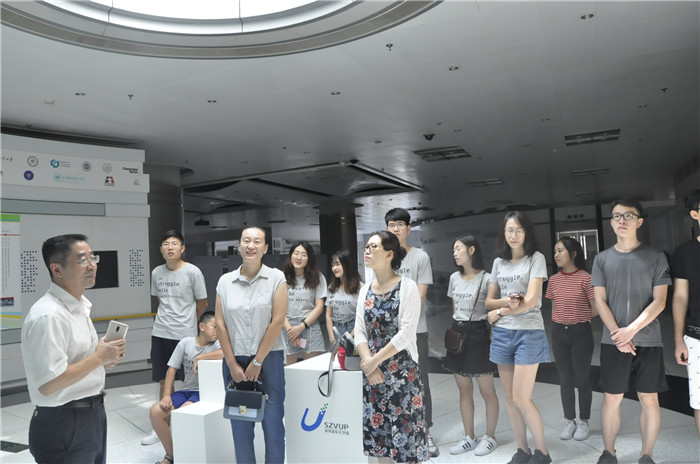 8月7日,山东大学威海校区机电与信息学院团总支副书记赵海慧携机电与信息学院师生一行16人莅临虚拟大学园,考察调研山东大学深圳研究院。山东大学深圳研究院常务副院长王明星、教育培训部部长刘丽、办公室主任王飞虎陪同接待。