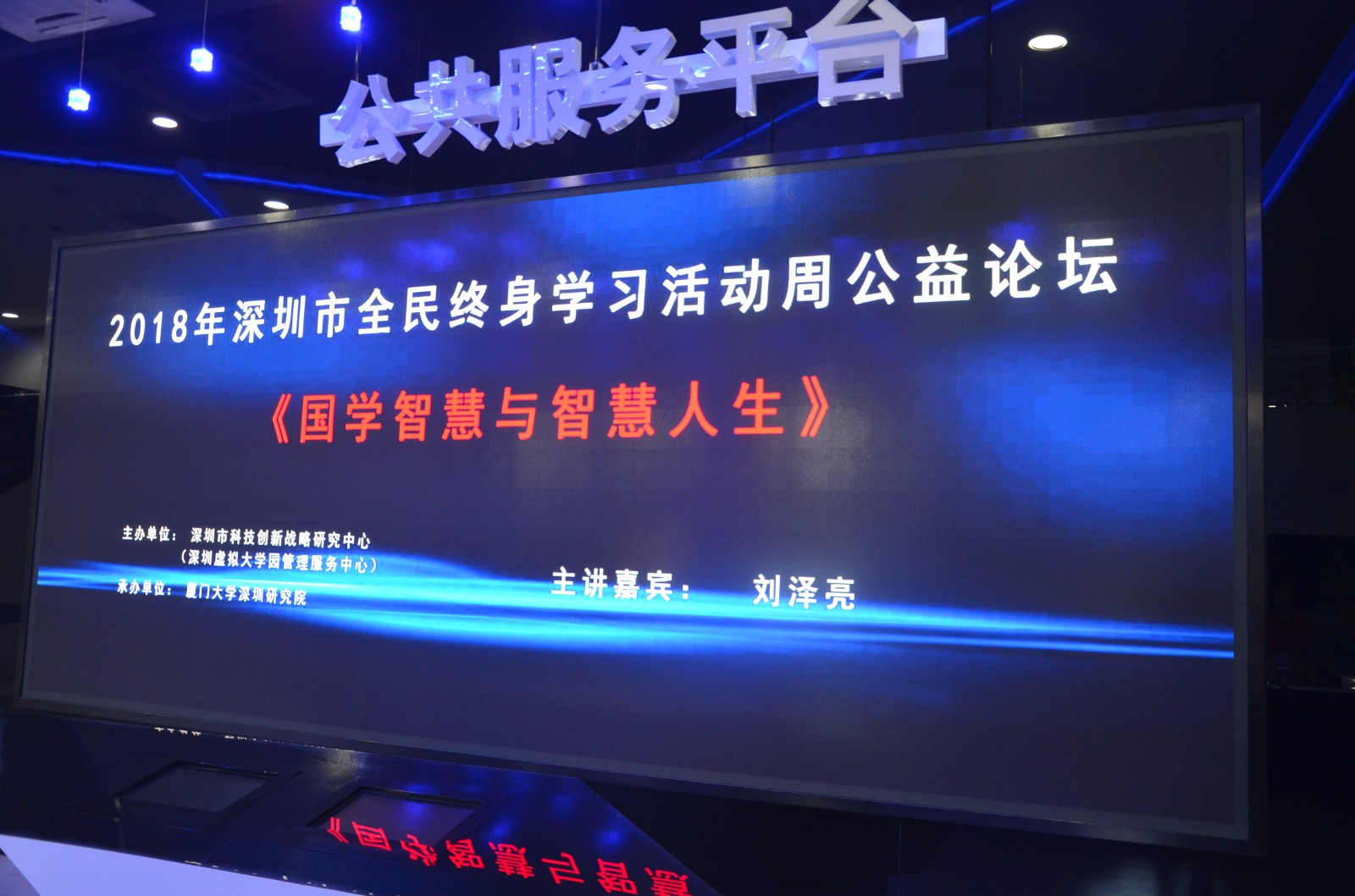 月落闻秋如是语,云疏现月本来颜。10月28日上午10时,由深圳市科技创新战略研究中心主办,厦门大学深圳研究院承办的2018年深圳市全民终身学习活动周公益论坛之“国学智慧与智慧人生”在深圳虚拟大学园产业化基地一楼报告厅顺利举行。
