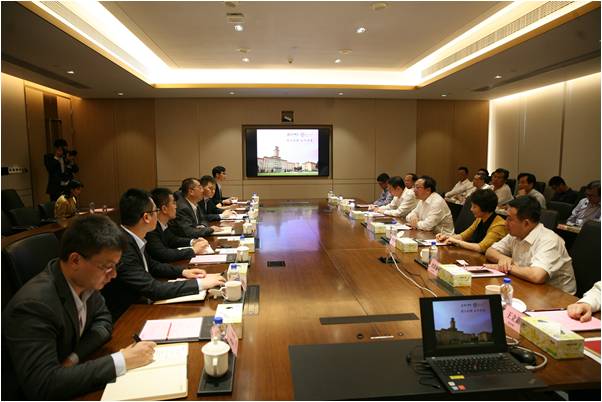 当天下午,曹雪涛校长来到恒大集团考察,与恒大集团董事局副主席、总裁夏海钧,恒大集团副总裁史俊平等进行座谈,达成初步合作意向,并参观了恒大集团总部。