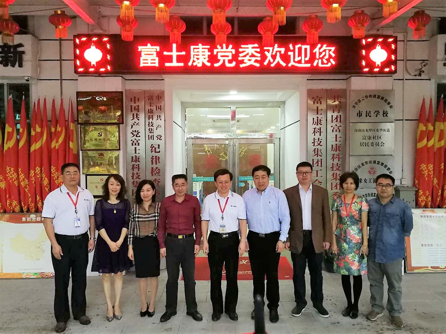 16日上午王明星陪同靳光华一行来到富士康,富士康集团党委书记刘忠先对来访者进行了热情接待,来宾们参观了集团党委办公室、C11幸福生活体验园,刘忠先详细介绍了富士康科技集团概况及集团党建工作的具体经验和做法;靳光华介绍了山东大学干部教育培训工作特点和优势,并对富士康的党建工作高度赞赏。双方就后续在非公党建领域的交流与合作进行了深度探讨。