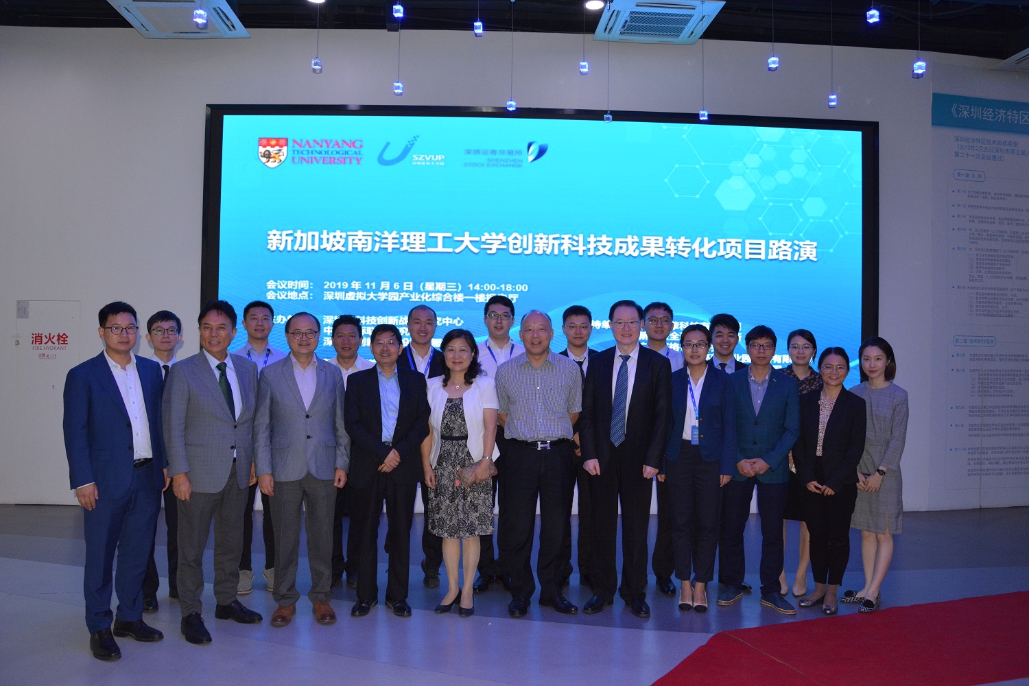 11月6日下午,由深圳市科技创新战略研究中心、中新国际联合研究院、深交所创新创业投融资服务平台联合主办,中新智擎科技有限公司承办的『新加坡南洋理工大学创新科技成果转化项目路演』在深圳虚拟大学园隆重举办。此次活动设有签约仪式、项目路演、圆桌会议等环节,吸引了来自粤港澳大湾区的多家上市公司、投资机构、高科技企业的100余名嘉宾共同参与。本次路演由新加坡南洋理工大学中国办公室主任文泉教授主持。