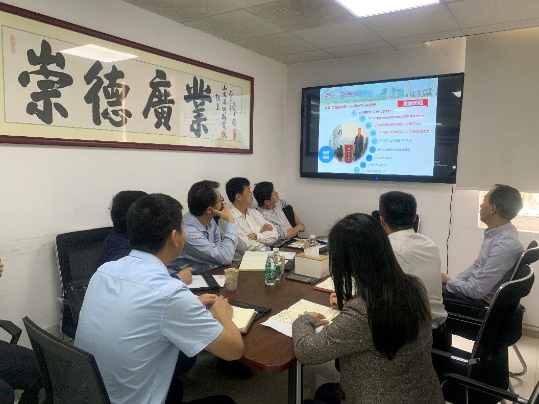 2019年11月14日上午,山东大学科学技术研究院周传健副院长一行莅临深圳研究院考察调研,山东大学深圳研究院常务副院长王明星与调研组进行了座谈交流。