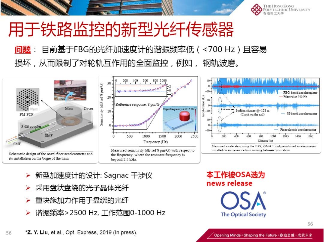 论坛中,卫教授以幽默的风格与大家分享了自己从事光纤通讯与光电设备研究的初衷、成果及经验,为大家介绍了5G技术拉动下我国光纤光缆行业的发展以及理大在光纤通信、光纤传感、光纤激光器与非线性光学方面的研究,目前理大很多创新技术已经得到了市场应用,如光纤光栅传感技术已应用于城市楼宇智能解决方案及2018年香港政府智慧城市计划;在医用传感器研究方面达到仅使用一个光纤光栅便可测量多个生物信息;研究出非接触式生命体征监测的双芯光纤传感器;特种光纤传感技术已用于铁路监控等。卫教授还为大家讲解了从光纤到光芯片的光通讯中前沿技术的发展状况与面临的挑战,介绍了一系列光学微加工、光子器件及应用。他指出:“虽然我国光纤产量领先全球,但在光纤技术方面与美国和日本仍存差距。未来‘中国芯’与光纤技术需齐头并进,不但要发展电子芯片,还需要发展光芯片。光子芯片是必然发展趋势。”他表示:“希望今后的科研能够更实际的做到成果转化,更多项目可以转化出来,帮助年轻人创新、创业。”