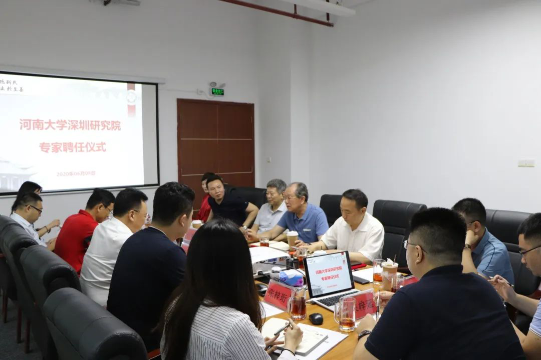 2020年6月8日,河南大学深圳研究院专家聘任仪式在深圳虚拟大学园产业化综合楼A205会议室举行,中国工程院院士王家耀等5位专家出席了聘任仪式,仪式由深圳研究院副院长周大鹏主持。