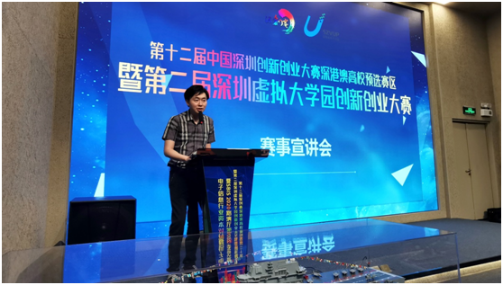 中山大学深圳研究院王书恒在会上对“第十二届中国深圳创新创业大赛深港澳高校预选赛区暨第二届深圳虚拟大学园创新创业大赛”的项目报名和操作流程进行了详细的阐述,在现场与有意向参赛的企业进行了充分的交流和互动。