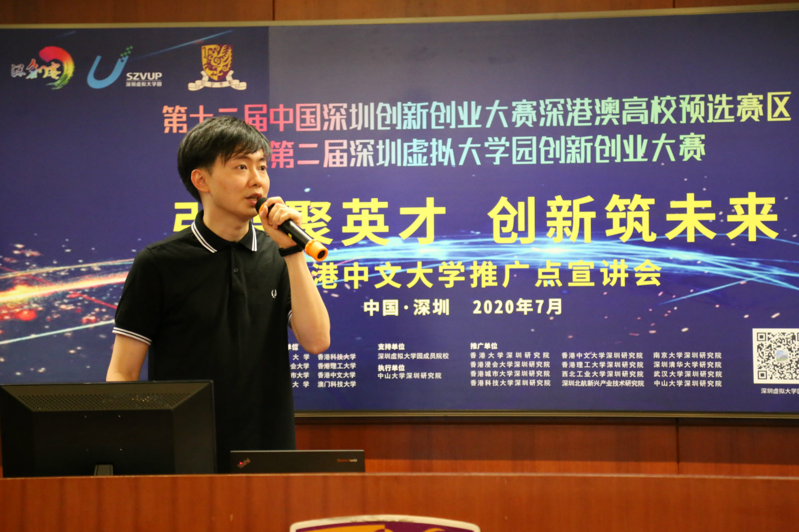 香港中文大学深圳研究院作为园区最早的成员院校及六所港校深圳研究院之一,在深圳市各级政府的支持下,积极参与科学研究、人才培育及技术成果产业化等工作,为深港两地的合作及发展作出贡献。为了不断促进深港创新创业的合作交流,特别是香港的科研成果在深圳的落地,香港中文大学深圳研究院积极参与深创赛的筹划、组织及推广工作。2020年7月8日下午,在研究院众创中心成功举办了以“引智聚英才,创新筑未来”为主题的大赛宣讲会。