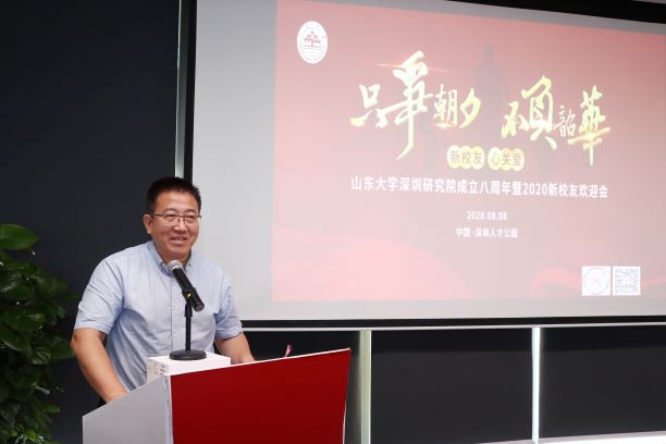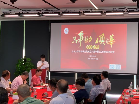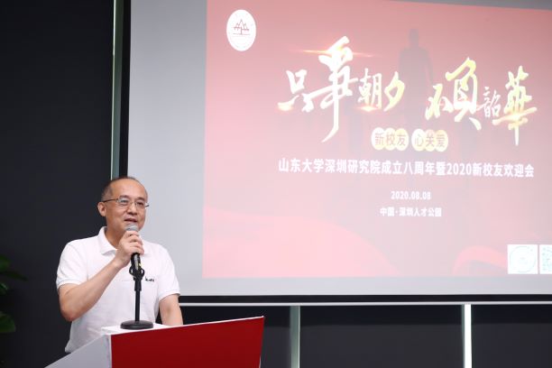 转型发展,提质增效,只争朝夕,不负韶华!2020年8月8日,“新校友•心关爱”——山东大学深圳研究院成立八周年暨2020新校友欢迎会系列活动在深圳市人才公园求贤阁成功举行。山东大学服务山东办公室主任井海明,经济学院院长曹廷求,深圳研究院常务副院长、合作发展部副部长王明星,校友会副秘书长、校友工作办公室副主任李湘军,管理学院副教授黄海啸,深圳市科技创新战略研究中心调研员戎雪亚,深圳出版发行集团党委书记、总经理、山东大学深圳校友会会长尹昌龙,深圳市东华实业(集团)有限公司党委书记、董事长、深圳市山东商会会长、深圳校友会常务副会长王立新,山东大学广东校友会秘书长冼伟强,富士康科技集团党委书记、山东大学名誉教授、兼职博士生导师刘忠先,深圳市评审管理中心副主任吕艳丽,深圳市集成电路设计产业化基地管理中心副主任王红玲,深圳京鲁计算科学应用研究院院长张瑞勤,南方科技大学深港微电子学院副院长周生明,广东省执业药师注册中心培训科副科长邓文辉,深圳市山东商会常务副会长兼秘书长王维,深圳市企业联合会会长助理朱兴勃,深圳市深商总会秘书长石庆,深圳市齐鲁总商会驻会秘书长尹兆杰,深圳点猫科技有限公司CEO李天驰,深圳市越疆科技有限公司CEO刘培超,2020届新校友代表、腾讯科技(深圳)有限公司陈卓,山东大学深港校友会、研究院合作单位、科研院所、商会协会代表及山东大学2020届粤港澳地区新校友等100余人出席活动,会议由山东大学深圳研究院副院长、山东大学深圳校友会副会长傅杰主持。