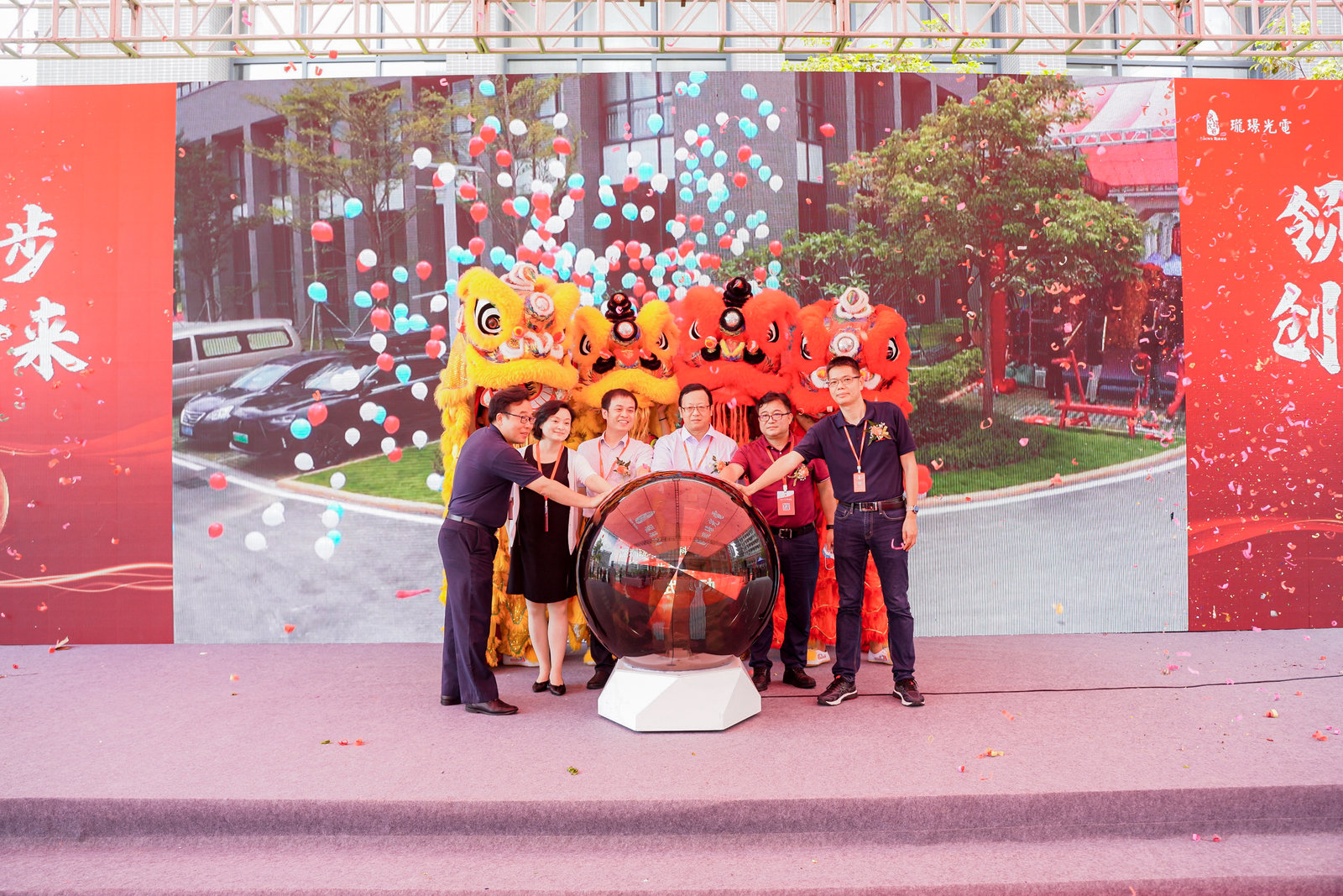 在热烈的掌声中,由中德微纳创新中心主任王大伟女士、湖南大学段辉高教授、珑璟光电COO汪涛先生、湖南大学深圳研究院院长徐晓波先生等共同为仪式剪彩,标志着珑璟光电技术有限公司深汕合作区生产基地正式落成投产。