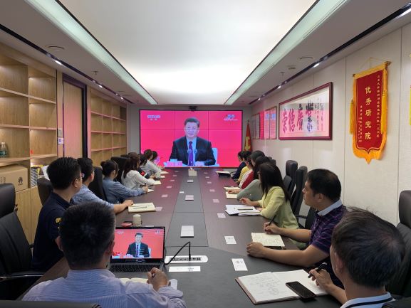 10月14日上午,深圳经济特区建立40周年庆祝大会在广东省深圳市隆重举行。中共中央总书记、国家主席、中央军委主席习近平出席大会并发表重要讲话。深圳研究院组织全体员工集中观看庆祝大会,学习习近平总书记重要讲话精神。专题学习会由深圳研究院常务副院长王明星主持。