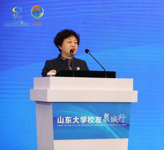 樊丽明在致辞中表示,山东大学秉持服务山东战略就是服务国家战略,服务山东发展就是服务国家发展,扎根齐鲁大地创建世界一流大学”的发展理念,把济南建设好、服务好、发展好是广大校友的共同心愿,更是山东大学义不容辞的责任担当。此次山东大学校友泉城行活动,是山大迎接双甲子校庆,推进“百廿山大强校兴国”行动的重要举措,是加快名校名城融合发展的生动实践,高度体现全体山大人争创一流,为国图强的初心、决心和信心,学校将充分发挥表率作用,深入挖掘校友资源,动员号召广大校友为济南聚力造势,助济南聚势蓄能,到济南聚资兴业,扎实引领济南新时代校友经济,全面服务济南高质量发展,携手共创校地互融互促互利共赢的美好未来,抒写山大人与泉城一起进步共同发展的壮丽篇章,为加快“大强美富通”现代化国际大都市建设作出新的更大贡献。