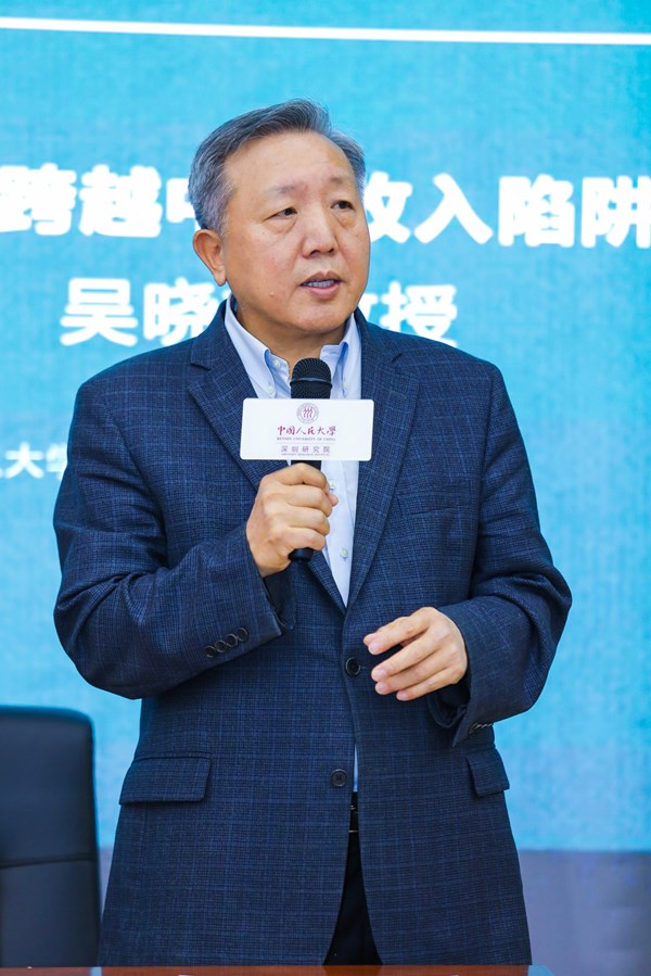 启动仪式后,吴晓求教授作题为《双循环战略与跨越中等收入陷阱》的主题报告,围绕双循环战略提出的时代背景,双循环战略存在的优势、痛点、难点,以及如何依托双循环战略实现跨越中等收入陷阱等三个方面内容展开深入、详实的讲述。吴晓求教授指出,当前世界经济发展格局日渐复杂化,全球出现的单边主义、民粹主义、逆全球化的趋势对国际经济活动带来重大影响,加上中美贸易战、新冠病毒的爆发及蔓延,为中国经济发展带来了极大的安全隐患,对经济发展模式提出了更高要求,双循环战略应运而生。吴晓求教授进一步指出,思想僵化、制度缺乏激励、创新能力不足、人才约束、要素市场效率很低、腐败和不作为现象严重、金融制度特别是货币信用方面存在问题是许多新兴经济体难以跨越中等收入陷阱的原因。中国实现跨越中等收入陷阱,需要破除思想的约束和制度的藩篱,大力发展基于人才的科技创新,正确处理政府和企业之间的关系,激发市场活力,同时扩大开放,推进与世界市场的有效融合。双循环的实现,将有力推动国家在“十四五”期间迈入发达国家行列,进而平稳跨入建设社会主义现代化强国的征程。