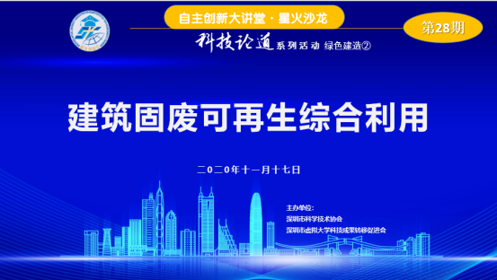 11月17日下午3点,自主创新大讲堂暨科技论道系列活动建筑固废可再生综合利用在深圳虚拟大学园顺利举行,活动由深圳市科协、深圳市虚拟大学科技成果转移促进会联合举办。邀请国内武汉理工大学、深圳市住建局、深圳市地铁集团、深圳市建材交易集团、中建系统等多家单位近20名建废渣土专业人士参加。