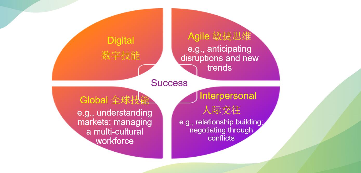 陈金樑教授表示科技在推动二十一世纪的教育发展,现在关注与讨论的重点不是学习方式,是在寻求提供的学习成果,AR、3D打印、大数据分析的出现,又促进了交互型的学习模式取代传统的被动接受式的学习模式。在目前的知识经济体系里,未来的学生们会是数字原生代,未来的工作和经济模式也将以技术和创新为主,但学生仅仅有数字素养是不足够的,非技术软技能,如:情商、沟通能力、跨文化敏感度等也是这个时代不可或缺的核心技能。技术的增长不一定会导致情商或伦理认知的增长,而情商在人工智能时代的下滑,将对社会产生巨大的潜在影响。软技能的培养是离不开人文教育的,大学教育需要重新平衡以人为本和以技能为先的教育方式,学生拥有敏捷的思维与学习专业知识同样重要,如果“技术能力商数”与经济健康水平成正比是合理假设,那大学全面的教育不仅需要让学生充满信心的驾驭技术领域,也要让学生有很快适应突然转变的能力。