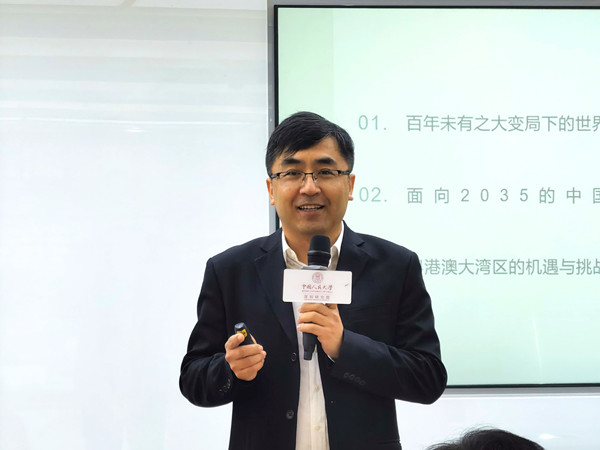 张猛副研究员以《百年变局与粤港澳大湾区的历史使命》为题,梳理了世界经济发展的历史进程,对中国当前发展的战略布局进行了解读,并就粤港澳大湾区发展、新经济发展模式、新基建与老产能升级等内容分享了自己的见解。