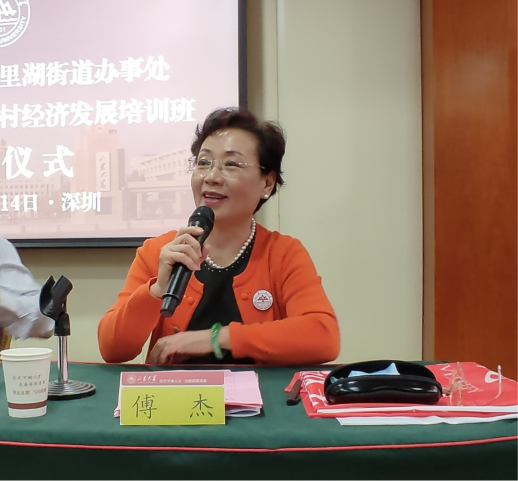 傅杰首先对济南市槐荫区美里湖街道各位干部的到来表示热烈的欢迎,向一直以来支持、关心,帮助山东大学和深圳研究院建设发展的各界朋友表示衷心的感谢!随后,她简要介绍了山东大学和深圳研究院的发展状况和阶段性成绩,回顾了山东大学与济南市悠久的合作历史和深厚的情感,充分肯定了槐荫区美里湖街道举办此次培训班的意义。她指出,山东大学的办学育人的“根”就在济南,为助推济南建设“大强富美通”的现代化国际大都市的目标,山东大学积极组织“山大系”服务济南行动。今年10月,山东大学在济南举办了山大校友泉城行活动,把校友“聚创泉城、聚创齐鲁”,全面服务济南高质量发展。其中,深圳研究院精准对接济南发展需求,组织推动粤港澳大湾区校友企业家一行与济南市签订7项战略合作协议。她表示研究院要做好山东大学和粤港澳大湾区的桥梁纽带,依托自身平台优势、区位优势、资源优势,推动双方人才、资源的互联互通,将山东大学的人才和科研成果转化到深圳,将深圳的先进经验引入山东,奋力打造服务山东、服务粤港澳和面向全世界的的一流产学研创新基地。站在历史的新起点,研究院要充分利用得天独厚的区位优势,抢抓“双区”建设的百年历史机遇,只争朝夕,追求卓越。切实提高综合服务能力,开创社会服务、校友服务工作崭新局面,永葆“闯”的精神、“创”的劲头、“干”的作风,奋力推进山东大学“双一流”建设和研究院转型升级,为粤港澳大湾区经济社会发展添砖加瓦,为“百廿山大强校兴国”争光添彩,为实现中华民族伟大复兴谱写新时代山大人的壮丽篇章!在致辞的最后,傅杰对培训班的学员提几点要求与大家共勉:解放思想,遵规守纪,珍惜机会,加强交流。