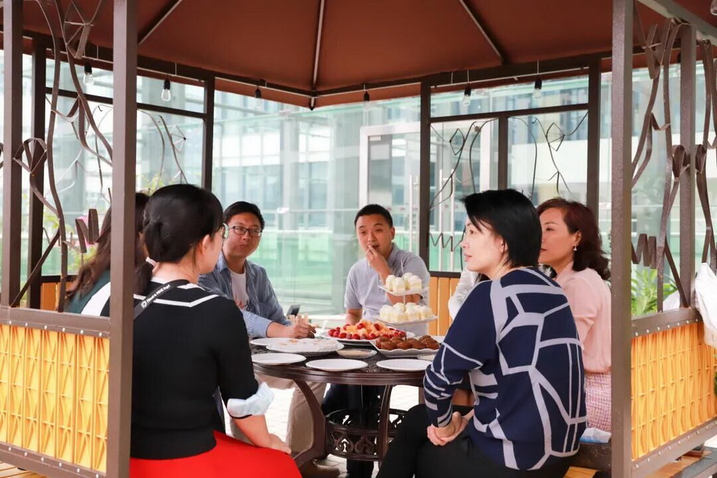 虽已入秋,却阻不住大家继续探讨的热情,会议结束后,一行人来到城大的空中花园进行自由交谈环节。秋风习习,每个人都兴致高昂,各自分享着在工作中遇到的趣事,不时传来阵阵欢声笑语。