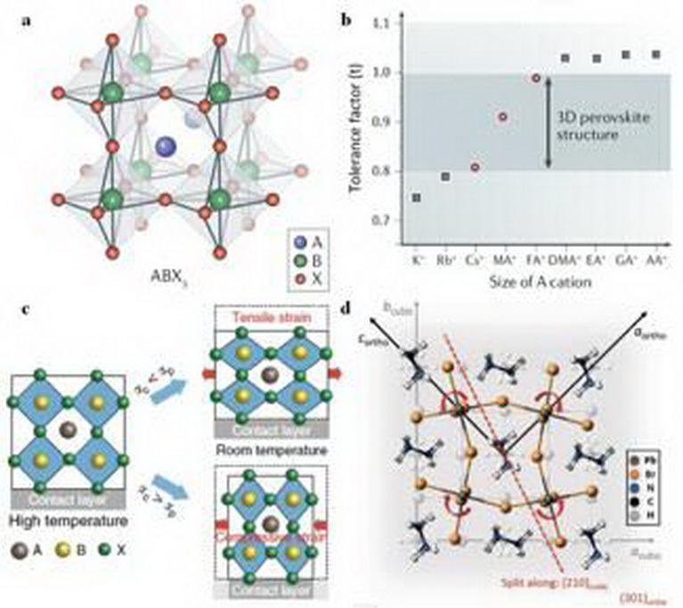 图1.钙钛矿的八面体结构,容忍因子,热膨胀系数等因素是晶体结构中存在各向异性先决条件。在外界服役拉/压应力、热应力以及外加超高压力下,引起了钙钛矿结构变化和应变。