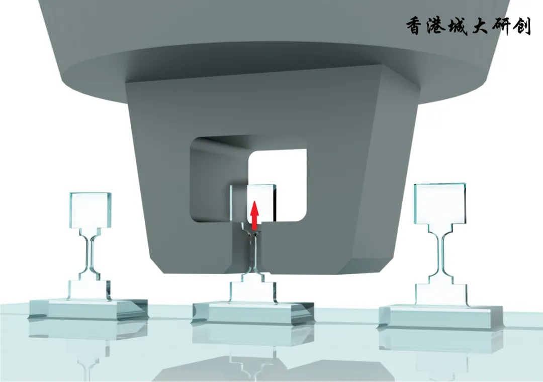 对金刚石微桥样品进行拉伸应变测试的示意图。(图片来源︰Dang Chaoqun / City University of Hong Kong)