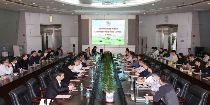 王明星代表山东大学深圳研究院向参加典礼的领导和同学表示热烈欢迎,对为此次开班付出努力的领导和同事表示衷心感谢。随后他介绍了山东大学和研究院的基本情况,山东大学作为近代高等教育的起源型大学,百廿年来,秉承“为天下储人才,为国家图富强”的办学宗旨,践行“学无止境,气有浩然”的校训,踔厉奋发,薪火相传,形成了“崇实求新”的校风,为国家和社会培养了60余万各类人才,为国家和区域经济社会发展做出了重要贡献。研究院立足深圳九年来深耕人才培养领域,根据各领域对高端人才的不同需求,开设多个稀缺专业,为粤港澳大湾区培养了大批高层次、高学历、高水平的高端稀缺人才,为区域经济社会发展奠定了坚实的人才基础。他强调,2021年是“十四五”开局之间,也是深圳建设中国特色社会主义先行示范区的关键之年,当今时代赋予了我们新的历史使命和重要责任,不断学习、提升自我是践行历史使命、应对社会变化的有效途径,在此对学员提出几点希望和要求:一是提高站位。学习是个人的事情,更是家庭、单位和社会的需求。希望大家大力发扬孺子牛、拓荒牛、老黄牛精神,以不怕苦、能吃苦的牛劲牛力勤奋学习,学以致用,做到知行合一。二是珍惜机会。山大有60余万校友资源,大家成为山大的重要一员,要多学多思多交流,用足用好这个平台。三是发扬山东大学的优良传统,弘扬新时代山大精神和山大文化。在各位领导和同学们的大力支持下,研究院将尽最大努力做好教学和服务管理工作。