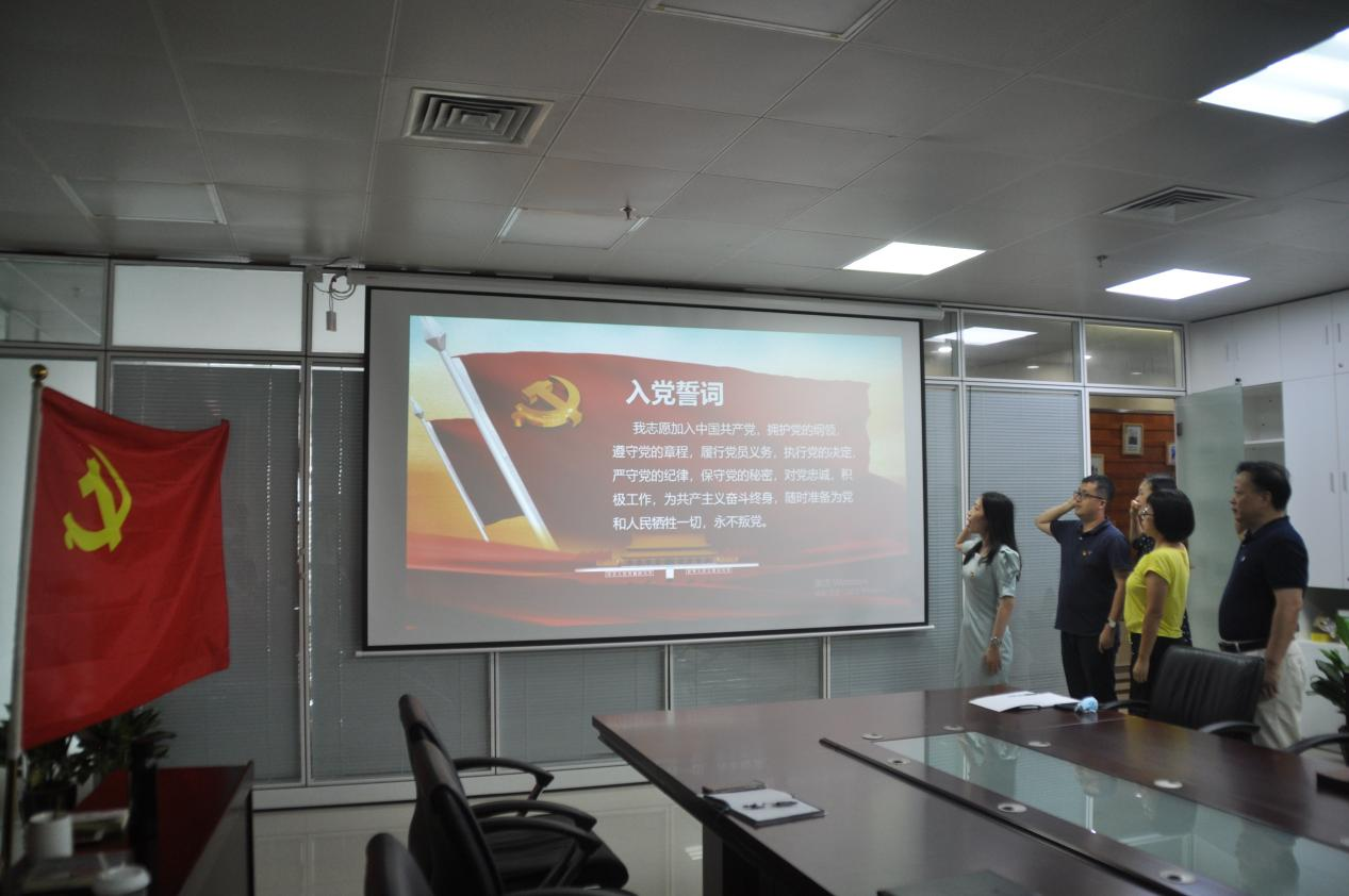 随后,在研究院全体员工的见证下,党支部书记樊颖带领支部全体党员面向鲜红的中国共产党党旗,高举右手,重温入党誓词,铿锵有力的宣誓声响彻整个会议室。与会党员纷纷表示,通过重温入党誓词,再一次体会到作为一名共产党员的责任感和使命感。在今后的工作生活中,用先烈的精神激励和鞭策自己,进一步坚定理想信念,脚踏实地的践行共产党人的初心和使命,以身作则,发挥先锋模范作用。
