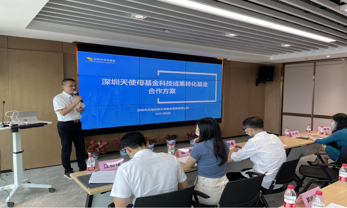 2021年8月25日,深圳华中科技大学研究院联合深圳天使母基金共同举办“天使荟高校科研院所专题对接会”华中科技大学专场活动在福田国际创新中心举行。出席本次活动的嘉宾有深圳天使母基金管理公司副总经理徐向东、基金与项目管理部部长邹小璐、协同创新部部长江智锋、深圳华中科技大学研究院科技发展中心经理樊颖、投资与孵化中心经理邓永春等相关业务骨干。