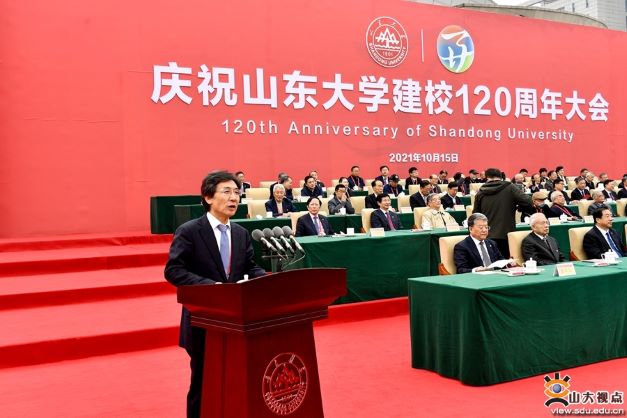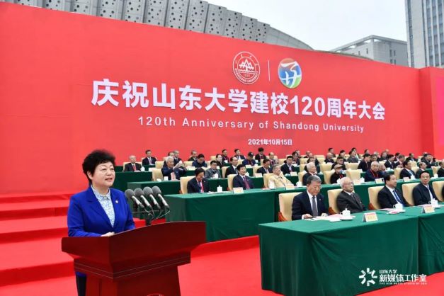 山东大学校长樊丽明在致辞时说,120年来,山东大学始终围绕“为天下储人才,为国家图富强”这一初心使命,以“强校兴国”的责任担当,图强而生、为国育贤,艰苦奋斗、开拓创新,书写了一部波澜壮阔、荡气回肠的创业史、发展史、奋斗史,积淀形成了独特的“山大基因”。这种独特的山大基因,饱含着大爱无疆的家国情怀,饱含着舍我其谁的担当精神,饱含着坚毅厚重的崇实品格,饱含着敢为人先的创新素养,是支撑我们战胜风险挑战、从胜利走向胜利的强大动力,是“山大风格”的文化内核。在全面建设社会主义现代化国家的新征程上,我们要始终牢记习近平总书记殷殷嘱托,深入贯彻习近平新时代中国特色社会主义思想,坚守初心、引领创新,扎根中国、厚植齐鲁,坚定不移走“中国特色、世界一流、山大风格”的发展道路,努力提升对卓越人才的培养力、对国家战略的支撑力、对优秀文化的引领力、对全球教育的影响力,奋力建设担当中华民族复兴大任的世界一流大学。