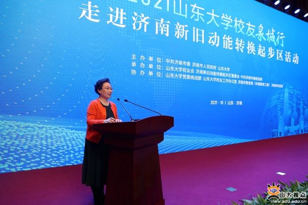 在2021山大校友泉城行——走进济南新旧动能转换起步区活动上,傅杰作为粤港澳大湾区代表在大会发言。傅杰介绍了大湾区发展校地融合的先进经验,她表示研究院认真贯彻落实“服务山东”战略,充分发挥桥梁和纽带作用,精准对接济南发展需求,在科技创新、成果转化、人才培养、产业发展等方面开展了卓有成效的合作,为济南实现高质量发展提供了强力支撑。深圳校友会也始终恪守“弘扬母校精神、彰显校友文化”的理念,积极投身粤港澳大湾区和深圳先行示范区“双区”建设,主动搭建校友之间联谊共享平台、学习互助平台、交流合作平台,打造“山大校友系”品牌,整合优质资源,共襄发展大计,集智聚力助推家乡发展。今年的山东大学校友泉城行活动,我们走进起步区,收获颇多、感触颇深,深受鼓舞、倍感振奋。深圳研究院、深圳校友会将逐步探索在科技创新、人才培养、干部企业家培训和产学研协同创新等方面与起步区合作,建立深入对接交流机制,助力起步区科技创新驱动和高质量发展,为校地合作掀开崭新的篇章。