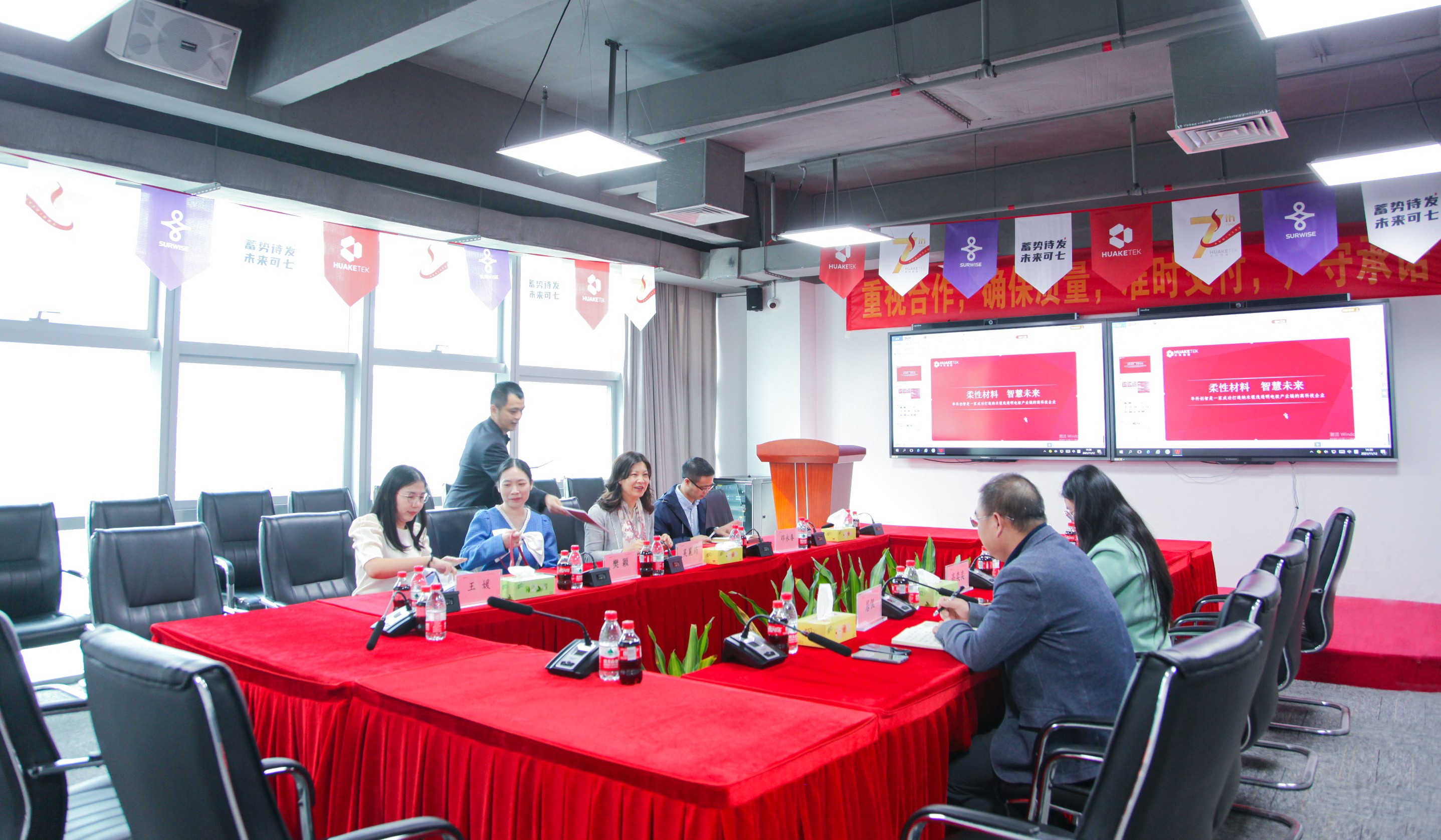 会上,华科创智副总裁高总转述了其董事长兼CEO喻东旭对研究院一行的热烈欢迎,并精彩介绍了“华科创智”的由来以及公司的发展历程、业务布局及在材料行业领域所取得的成绩。