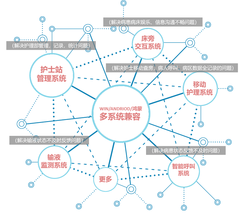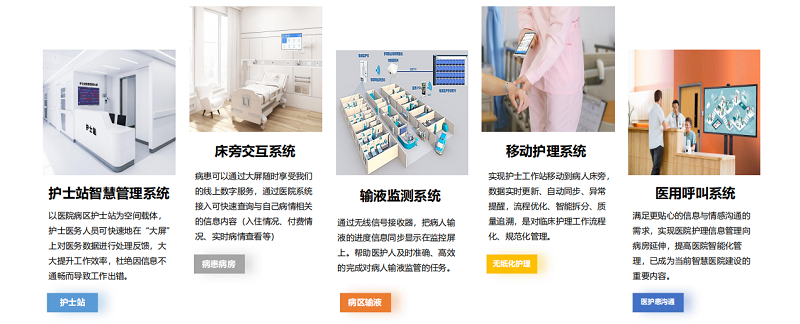基于对智慧医疗行业的深度调研分析,合盛科技围绕医院病区服务场景,潜心研发出护士站智慧管理系统、智慧床旁交互系统、移动护理系统、输液监测系统、医用呼叫系统病区五大核心系统,旨在帮助医务工作者在护理过程中,及时的对病患数据进行实时采集更新、状态动态分析与信息集中管理,让医患行为的数据“活起来”,真正做到医院的智慧高效运营。